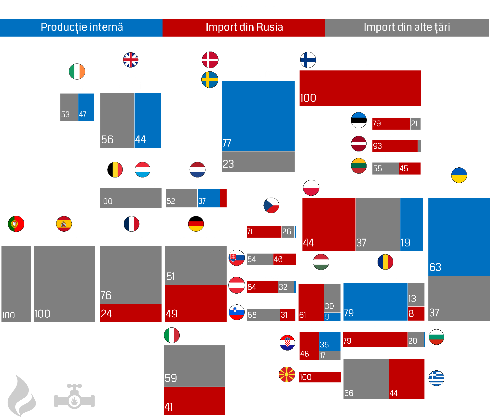 Dependența statelor europene de importul de gaze din Rusia și din alte țări
