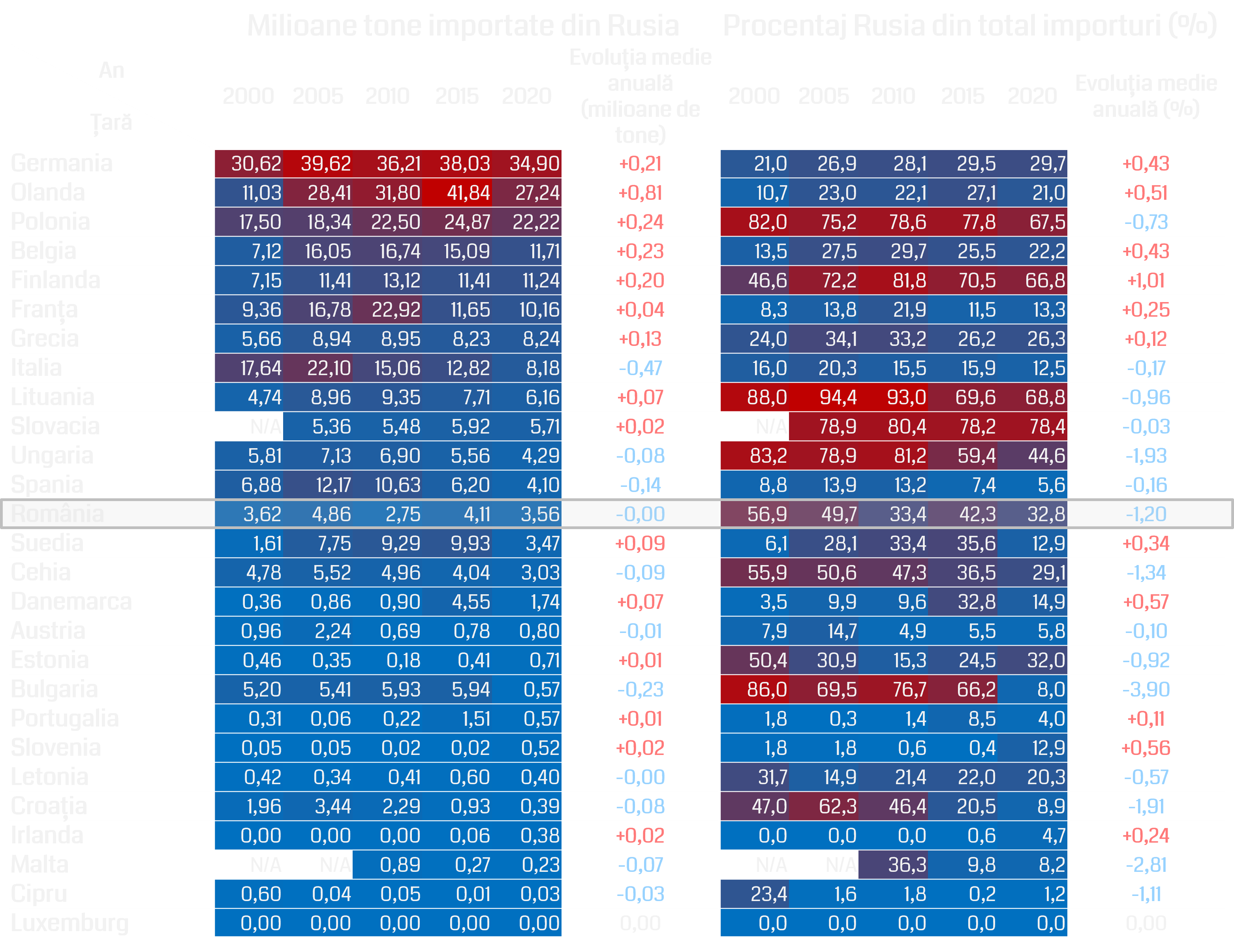 Evoluția importurilor de petrol şi produse din petrol din Rusia ale statelor din Uniunea Europeană