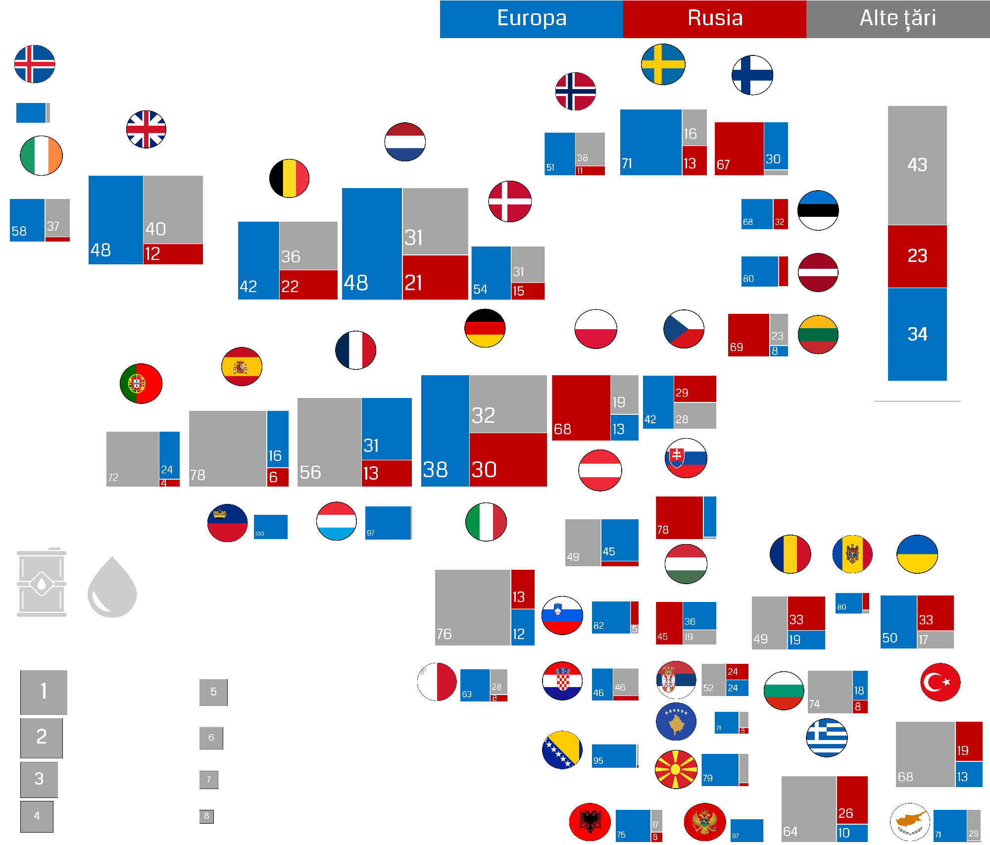 Dependența statelor europene de importul de petrol și produse din petrol din Rusia